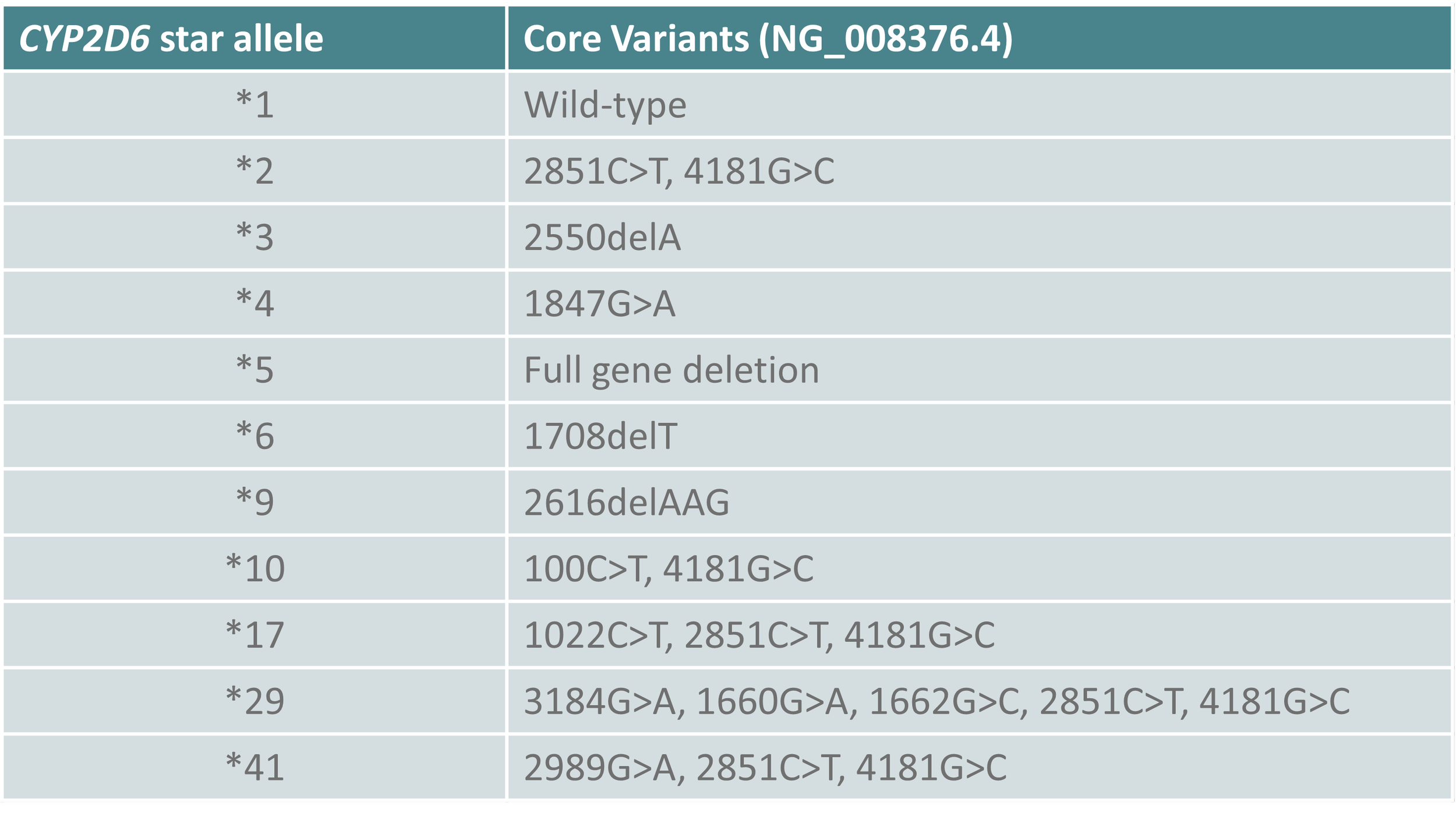 CYP2D6 star alleles detected by the APIS CYP2D6 dPCR Kit
