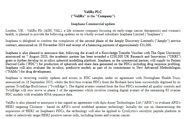 ValiRx PLC and APIS signed an agreement to evaluate HER2 Clickmer®